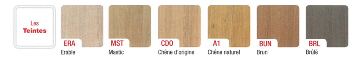 Les Coloris de caissons (intérieur/extérieur) et chants avant ABS assortis